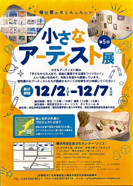 今年も12月2日(火)から12月7日(日)まで、横浜市栄区民文化センターリリスに於いて小さなアーティスト展を開催します。