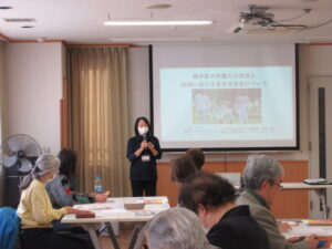 2月27日(金)、いそご多文化共生ラウンジ施設長の坂本寿子氏を講師に迎え、磯子区における外国人の状況と地域における多文化共生についての話をうかがいました。